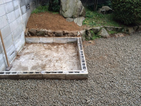 もともと犬小屋だったのを子供の砂場ように解体して砂をいれて、ブロックをモルタルで丸めて安全にしてくれました。