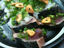 前に、どうだ!というぐらいの分厚さで食べたカツオのたたきです。