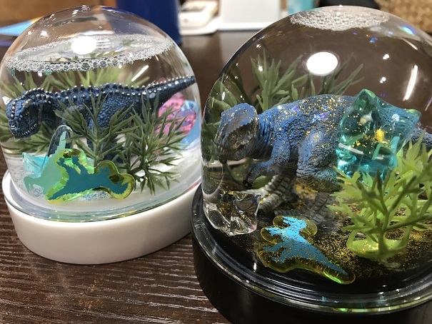 今は、こんなスノードームをスタッフさんと一緒に作ったり、