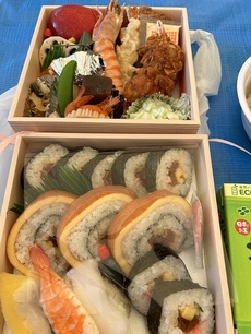 それと、こんなに豪華なお弁当をいただき、私は芋煮汁と巻き寿司だけでお腹パンパンになってしまったので、おかず類は持って帰って、家族に食べてもらいました。