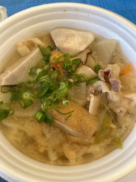 いわゆる「豚汁」?「トン汁」?の中に、里芋が入っており、「芋煮汁」という呼称なのでしょうか。前日からの大量の具材の仕込み、そして当日に調理をする。関係者様方々、本当にお疲れ様です。ですので、「芋煮汁」には、大行列です。