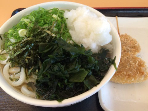 気休めに、たも屋に来たら、かけに、ワカメと大根おろしを沢山のっけます。少しでも食物繊維をと思い。