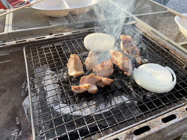 外で飲む酒と、炭で焼く肉は、美味いのである。