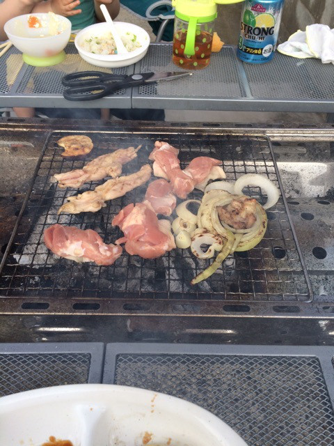 BBQといっても、焼くのは少しの肉と、少しの野菜と、子供はご飯を外に持ってきて食べるというものです。