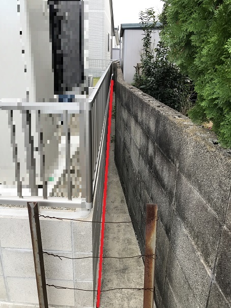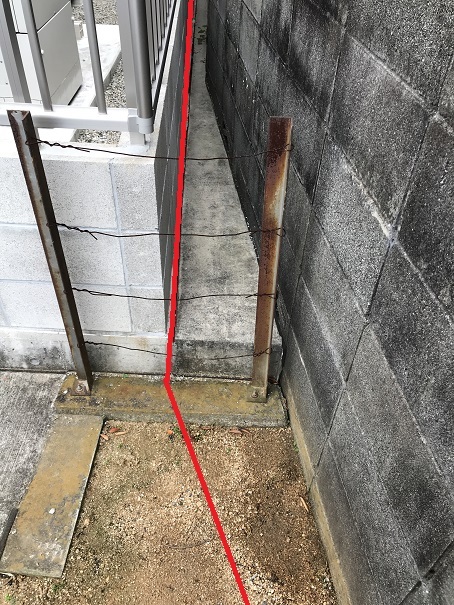 写真の一番手前の土の上を走る赤い境界ラインですが、