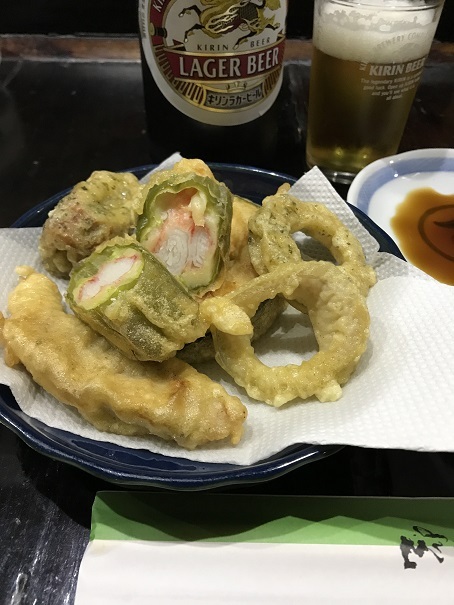 カウンターに置いてある不思議な天ぷらの盛り合わせ 350円