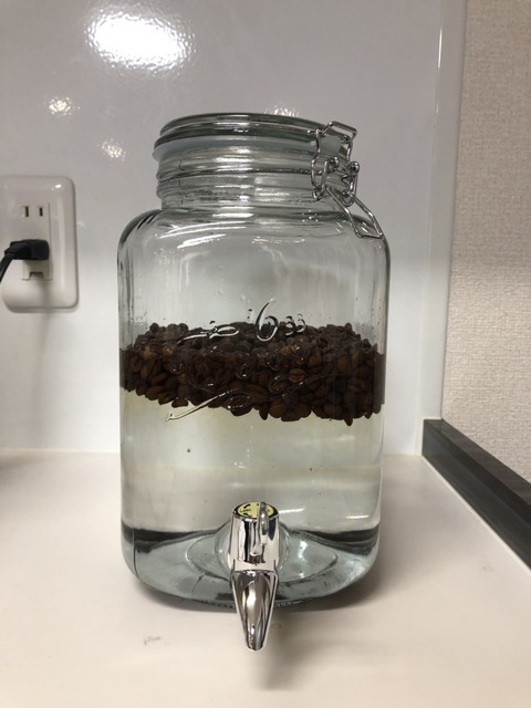 珈琲豆を焼酎に漬け込みます。