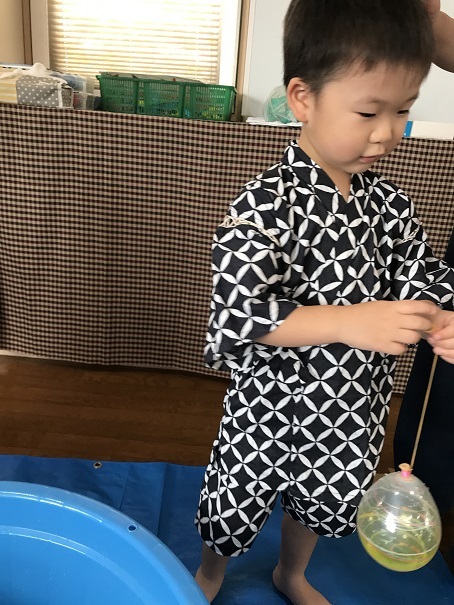 写真は、次男の、夏祭りの行事に参加した時のものです。