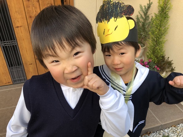 次男が作った「鬼のお面」が、鬼なのに、なんともカワイイ。