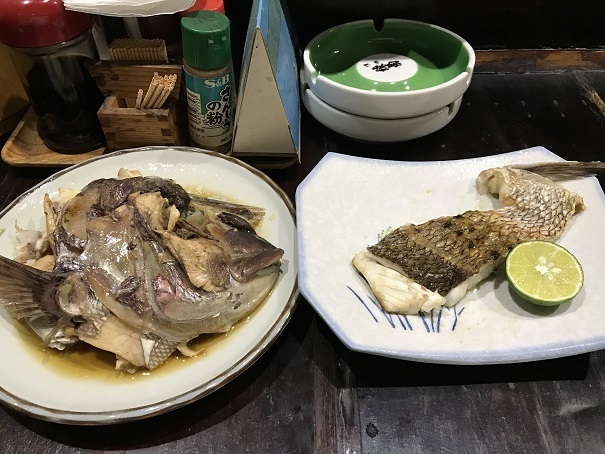 「宴鳥さんの、鯛の兜煮と、鯛の塩焼きと、ラーメン大!」です。