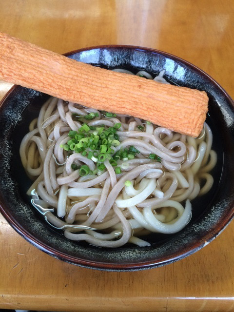 今日は、そばとうどんのミックスで。