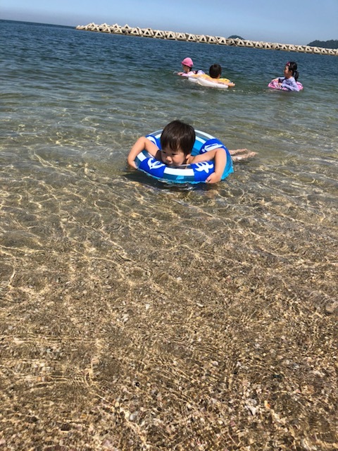 写真は、次男の初海水浴の画です。少し前の。
