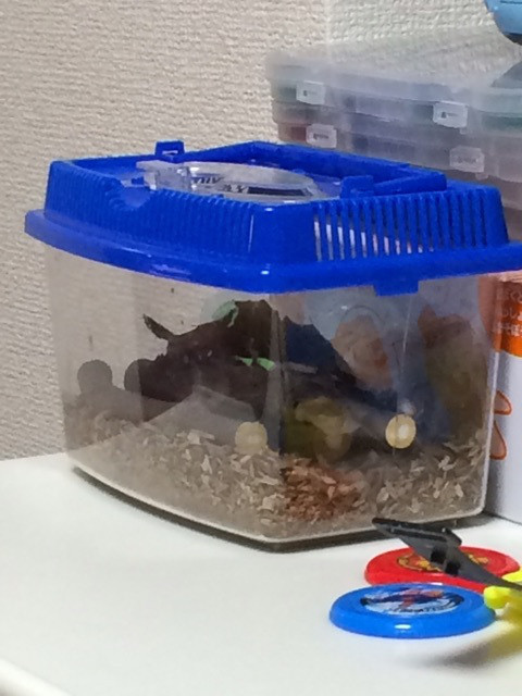 このハコには、今、おとなしい大きなクワガタと、活発な小さいクワガタがいます。