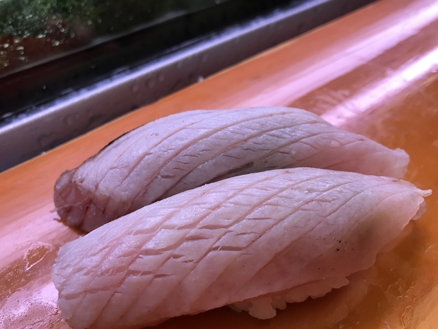 写真は、ちょっと嫌味なぐらいにドアップにしたお寿司です。