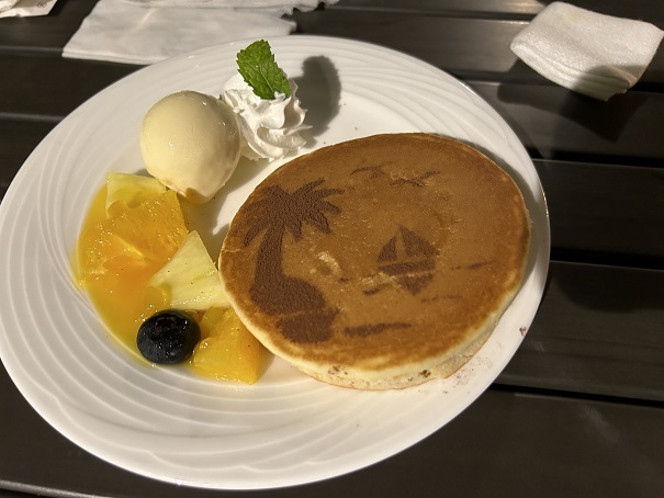 この最後に配膳された「パンケーキ」を食すのも無理がありました(笑)。