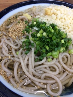 うどん屋さんのそばなので、本格的なものではありませんが、他の黒々したものでなくて、ほんのりしろく、なんというかふんわりした麺なのかと思います。