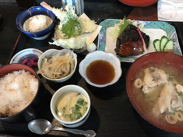 ブリの照焼があり、天ぷら盛合せもあって、刺身もあってと、