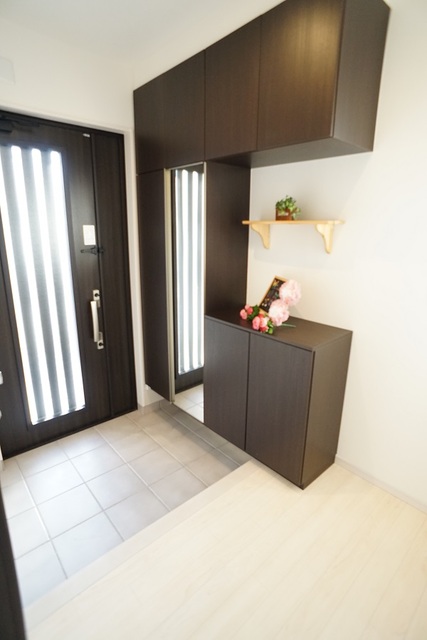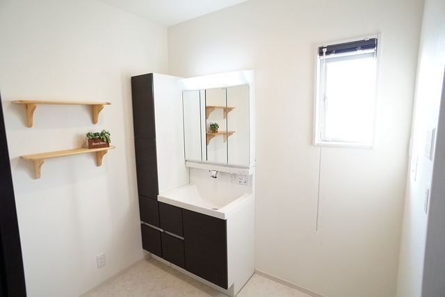 シャワー付洗面化粧台、温水洗浄便座、カウンターキッチン、システムキッチン、食器洗浄乾燥機、IHクッキングヒーター、3口以上コンロ、全居室収納、クローゼット、複層ガラス、浄化槽、出窓、上水道、電気、側溝、庭