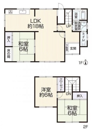 3LDK(1F和室6畳 LDK18畳 2F洋室6畳 2F和室6畳)